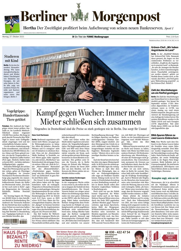 From 27.10.2025 The Berliner Morgenpost is published from Monday till Saturday since April