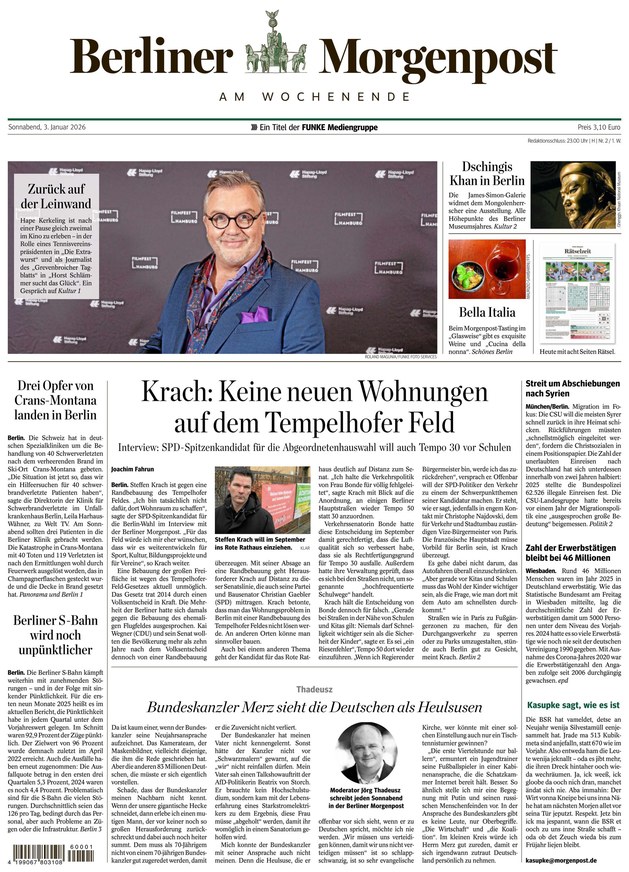 From 03.01.2026 The Berliner Morgenpost is published from Monday till Saturday since April