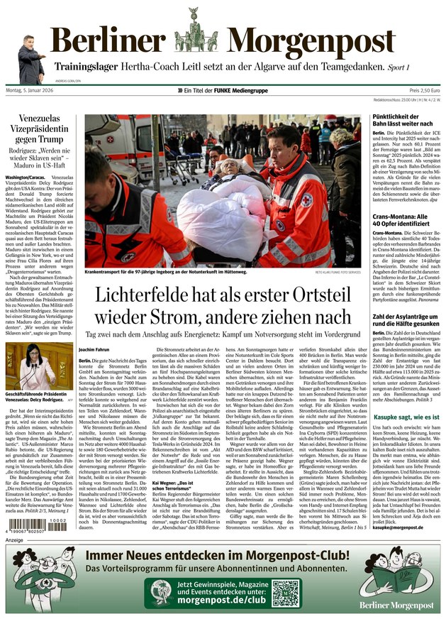 From 05.01.2026 The Berliner Morgenpost is published from Monday till Saturday since April