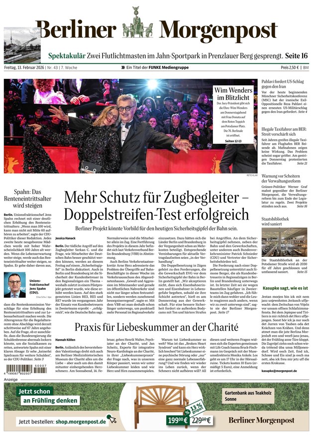 From 13.02.2026 The Berliner Morgenpost is published from Monday till Saturday since April