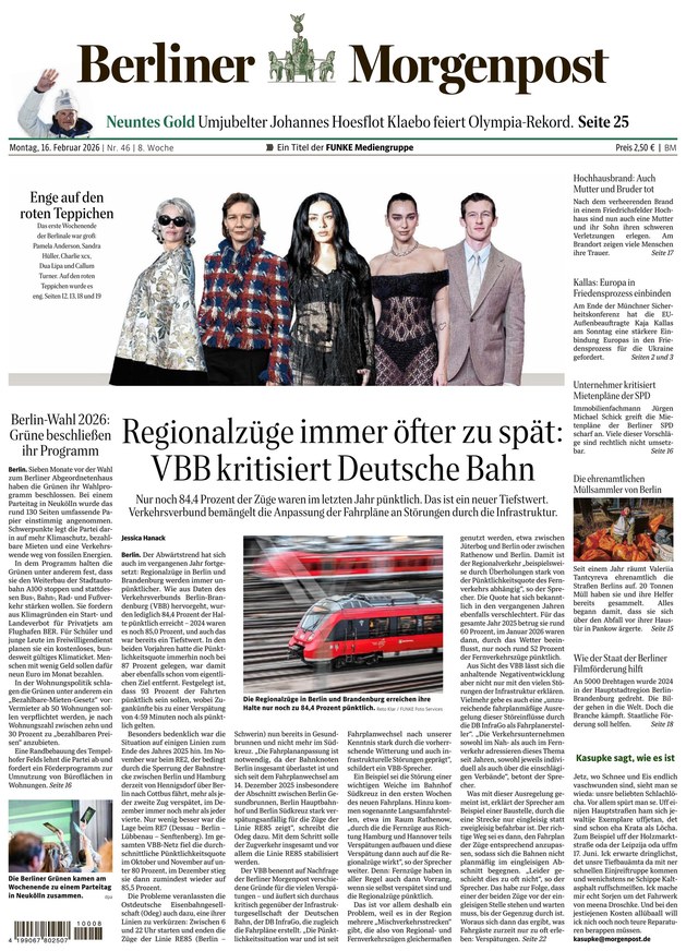 From 16.02.2026 The Berliner Morgenpost is published from Monday till Saturday since April